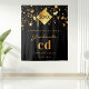 A chic black background. Decorated with golden stars and a modern, abstract faux gold cap, hat, tassel topper with the year inside. Text: Congratulations! and Graduate. Personalise and add a year, monogram initials, name and school name. For both him and her. A banner , party decoration, or photo booth, backdrop for a 20xx (or any year) graduation party.