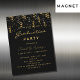 A modern and stylish invitation magnet for a graduation party. For both him and her. A classic black background and golden and black party streamers as decor. Personalize and add a name and party details. The text Graduation and the name are written with modern handlettered style script. Golden letters.