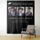 Elegant black graduation party photo booth backdrop to celebrate the graduate. "CONGRATULATIONS" is in large white typography with an illustration of a graduation cap. Add three photos of the grad and their name, class year and school name in modern white typography. The background and text colors can be edited to match your school colors by editing in the design tool.