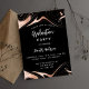 A modern style invitation for a graduation party. A black background decorated with rose gold swirls. Personalise and add a name and party details. The text Graduation and the name are written with modern hand lettered style script. White coloured text.