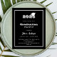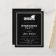A modern and stylish invitation for a graduation party. For both him and her. Black background, white text and a frame. A white graduation cap.