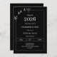A classic black and white invitation for a graduation party for a guy. Text: He did it! Decorated with a black graduation cap. Personalize and add a name and the details.