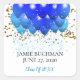 A bold neon blue balloons and gold confetti on white graduation party stickers for envelope seals for your party invitations. customise with your name and class year. Vibrant festive style. Select from other shapes if you prefer.