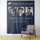 Elegant dark blue graduation party photo booth backdrop to celebrate the graduate with "Congratulations" in large white typography, an illustration of a graduation cap, a three photo collage and his or her name, class year and school name in modern white typography. The background and text colors can be edited to match your school colors by editing in the design tool.