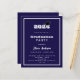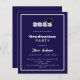 A modern and stylish invitation for a graduation party. For both him and her. Blue background, white text and a frame. A black graduation cap.