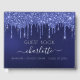 A guestbook for a feminine and glamourous graduation party. A stylish navy blue background with faux glitter drips, paint dripping look. The blue colour is uneven. The text: The name is written in white with a modern hand lettered style script with swashes. With the text: Graduate - class of 20xx (or any year). Personalise and add your text on the spine.