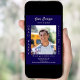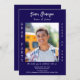 Personalise and add a photo, name, school name, class of, and party details. A dark blue background, white text.