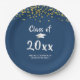 Graduation Party CLASS OF Blue Gold Glitter Paper Plate