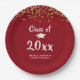 Graduation Party CLASS OF Red Gold Glitter Paper Plate