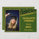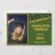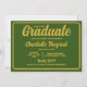 Green and gold school colours, black graduation caps thrown in the air for both him and her. Nice graduation party invitations for a grad party for a graduate from a high school, college, or university with school colours of green and gold. Personalise with graduation year, name of the graduate, and the name of the school plus all your party invitation information.
