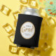 This modern and classy graduation party design can be personalised with your name, school, and class year. The gold and black text and gold circular border is placed on a white background and surrounded by a black edge. The words "Congrats Grad" adorn the design, and the word "Grad" is set in a large gold hand-written script font. The colours of the text, gold trim, and background can be changed in the Edit Menu.