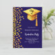 Graduation party dark blue gold confetti invitation