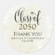 This design features a graduation label, a thank you sticker, a black and gold, brush script, calligraphy typography, a simple minimalist, party favour, a basic plain, party decor, with class of your year.