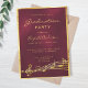 A girly, feminine and glamourous invitation card for a graduation party. Glamourous burgundy background and decorated with faux gold music notes. The burgundy colour is uneven. Template for name and party details. With a faux gold frame. The text Graduation and the name are written with modern handlettered style script. Golden letters.