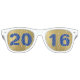 Fun white framed graduation party glasses, with the dotted lenses done in a gold tone and big blue custom graduation year, across both sides. Change the year to suit your graduation needs.