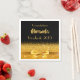 Elegant, classic, glamourous and feminine style napkin for a graduation party. A gold coloured ribbon and bow. Black background. Templates for name, golden letters. With the text: Congratulations and Graduate 20XX