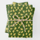 Green and gold school colours, gold graduation caps thrown in the air for both him and her. Nice graduation party gift wrap for a grad party, for a graduate from a high school, college, or university with school colours of Green and gold.