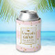 Celebrate your grad or entire graduating class with this custom can cooler. Design features the words "Congrats Grad" and a faux gold glitter graduation cap framed by pink and white stripes. Add the class of year and custom text to create a truly one of a kind graduation gift or graduation or class reunion party favour that will be used for years to come. Please email us at colorfulgalshop@gmail.com if you'd like help changing the background colour to match your party or school colours.