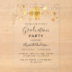 An elegant, simple invitation card for a 2025 (or any year) graduation party for both him and her. A clear, transparent background and a modern black abstract tassel topper in faux gold with the year inside. Decorated with falling golden stars. Personalise and add a name and party details.  The text Graduation and the name are written with modern handlettered style script.