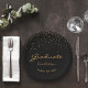 A modern and trendy graduation celebration. A chic black background with golden confetti. The text: Graduate is written with a large hand lettered style script. Template for a name and year. Matching napkins are available in our store.
