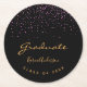 A modern and trendy graduation celebration. A chic black background with pink and purple confetti. The text: Graduate is written with a large hand lettered style script. Personalise and add a name and year.