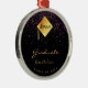 For a modern and trendy graduation celebration. A chic black background with pink and purple confetti. The text: Graduate is written with a large hand lettered style script, golden letters. Template for a name and year. Decorated with a modern abstract faux gold cap, tassel topper. Perfect as a gift, keepsake or party decoration.