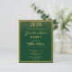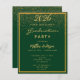 A modern and stylish invitation for a 2026 graduation party. For both him and her. A classic green background and golden confetti rain. With a faux gold frame. Template for name and party details. The text Graduation and the name are written with modern handlettered style script. Golden letters.
