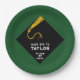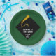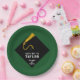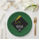 Personalised graduation party plates featuring classic black cap and gold tassel design on a green background. Edit text to add your favourite grad's name and the year.