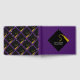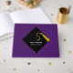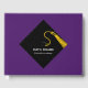 Creative graduation guest book to include words of advice and good luck wishes featuring black and gold cap pattern on purple background. To personalise edit text to add graduate's name, school and senior class year.