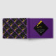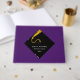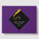 Creative graduation guest advice and good luck wishes book featuring black and gold cap on purple background. To personalise edit text to add graduate's name, school and senior class year.