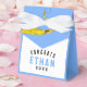 Creative graduation party favours and grad gifts featuring light-blue cap design and congrats line. Edit text to add name of your favourite senior class graduate and the year.
