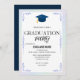 Elegant graduation party invitation with a clean white background, soft gold accents, and a classic graduation cap design. Fully editable template to personalize the name, date, time, location, class year, and RSVP details. Perfect for high school or college graduation celebrations.