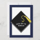 Creative graduation party invites for the class of 2025 grad featuring black cap and gold tassel on navy blue background.