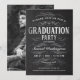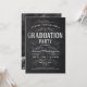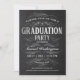 Graduation Party Invitations Scrollwork with faux silver foil. Minimalist, vintage, formal, fancy, elegant, old-fashioned calligraphy scrollwork on chalkboard background