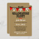 Planning a 2015 graduation party? If you are, you are in need of graduation party invitations. These graduation party invitations feature a vintage flair with vintage typography and red and white flags on a cardboard brown colour background. The word class appears along the top with the word "of" in a flag along with the year of graduation in the flags. You can customise the design with all you graduation party details including the place of graduation making for a fun graduation invite. Copyright henishouseofpaper
