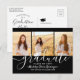 Graduation Party Modern Black and White 3 Photo Invitation Postcard