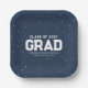 Celebrate the student athlete graduate with this personalised plate perfect for a graduation party. The sporty type in white on a classic navy blue background announces the year, school, name and more. This design coordinates with the Sporty Grad collection of graduation announcements, graduation party invitations and party supplies by Lea Delaveris Design. Other colours and styles also available.