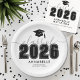 Class of 2026 Bold Elegant Black and White Graduation Paper Plate.