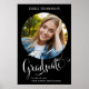 Add a touch of elegance to your celebration with this graduation party sign featuring a customisable photo template and stylish calligraphy script paired with modern typography. The timeless black and white design offers a simple and clean look, perfect for high school or college grads. Celebrate your graduate with personalised grad party decor that beautifully highlights the class of milestone. A chic and meaningful way to welcome guests!