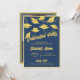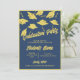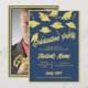 A navy blue and gold customisable invitation for a graduation party for him or her. Personalise the front of these graduation invitations with the graduate's name and your party information. Customise the back of the graduation invitation with a photo of the graduating senior, the graduation year and school. Gold graduation caps and mortarboards tossed in the air on a blue background. Fun graduation party invitation for high school or college graduations.