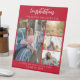 Photo collage script graduation party table top sign for the new graduate. Features 4 photos of the graduate. Add a name, school college, and class year of graduation by clicking the "Personalise" button.