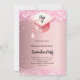 A modern, elegant Graduation party invitation. A blush pink gradient background decorated with pink confetti and a large graduation cap with tassel. Personalise and add a name and party details.