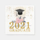 Elegant pink gold script signature graduation party napkins with floral decorated typography, grad cap and gold type on a black napkin. Simple and minimalist typography and grad cap with gold rays and gold glitter.