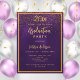 A modern and stylish invitation for a graduation party. A deep purple background and golden confetti rain. The purple colour is uneven. With a faux gold frame. Template for name and party details. The text Graduation and the name are written with modern handlettered style script. Golden letters.