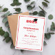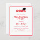 A modern and stylish invitation for a graduation party. For both him and her. White background, red text and a frame. A black graduation cap.