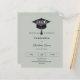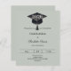 A modern and stylish muted sage green invitation for a graduation party. Decorated with a black graduation cap. Personalize and add a name, and the details.