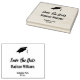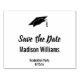 'Save the Date' appears in an elegant script under a graduation cap. There are three lines of display text below the script. You can edit the text to show the graduate's name, the event type, and the graduation party date.