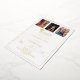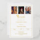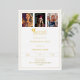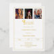 A modern and stylish white and gold invitation for a graduation party. Add 3 photos. Decorated with a graduation cap. Personalize and add a name, and the details. Real gold foil text.