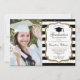 Graduation party invitation with your photo. Features black white stripes, script font, tassel and confetti. Elegant black, white design with faux glitter gold. Perfect for an elegant celebration.