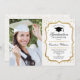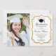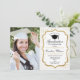 Graduation party invitation with your photo. Features script font, tassel and confetti. Elegant white design with faux glitter gold. Perfect for a stylish celebration.